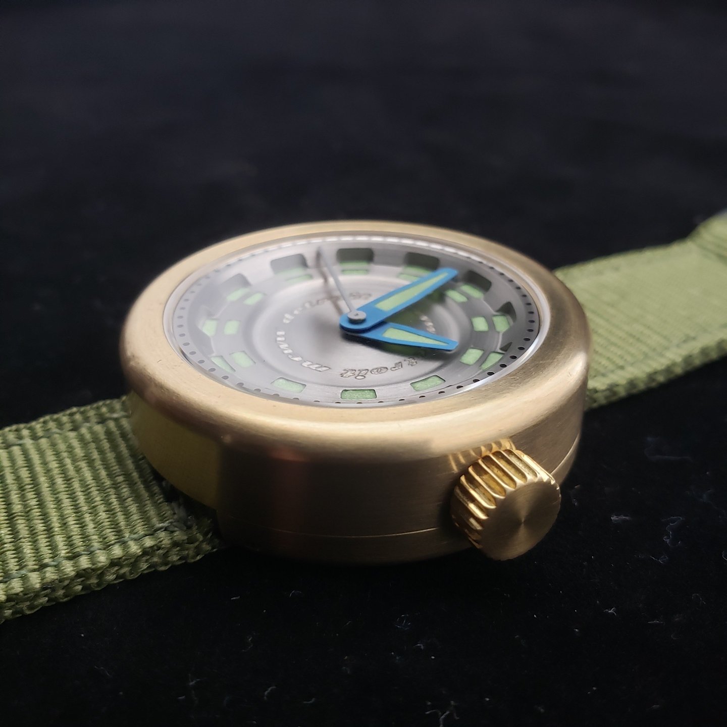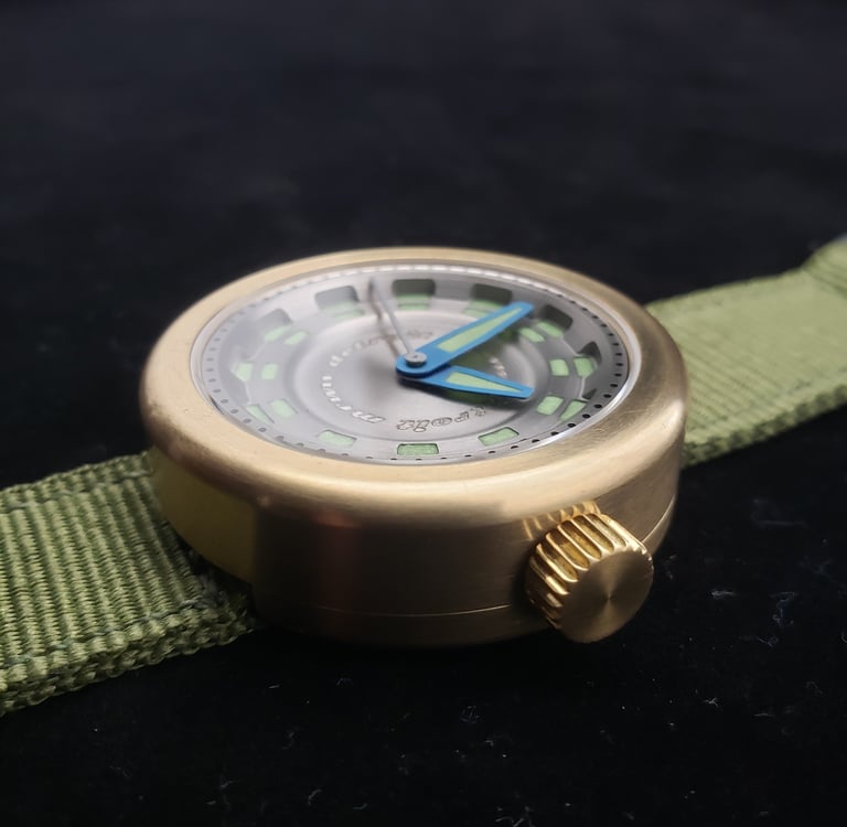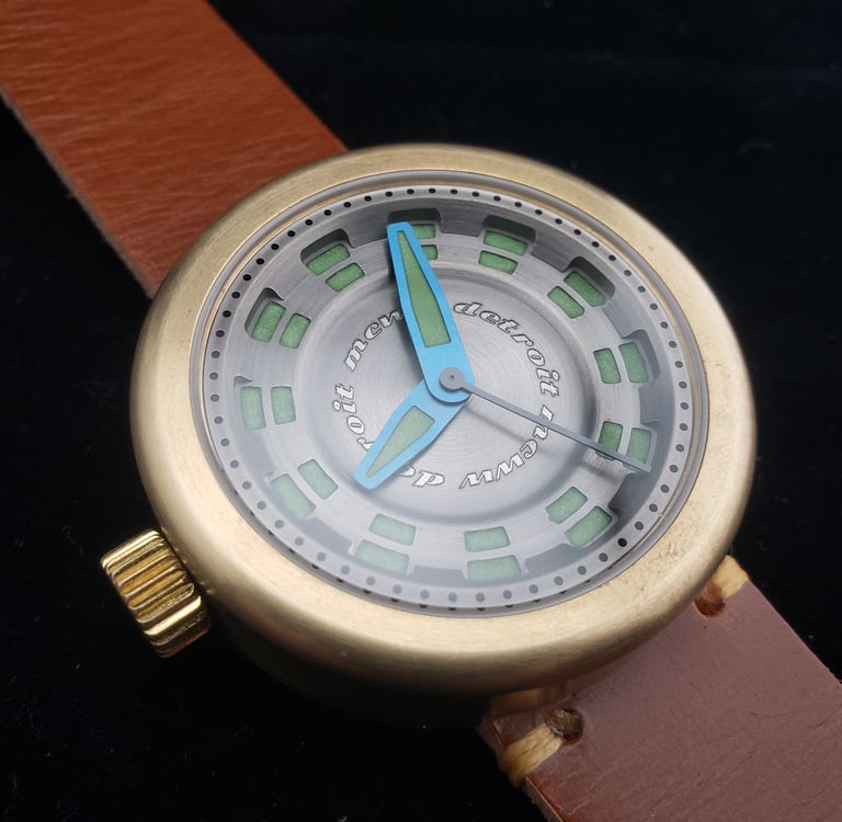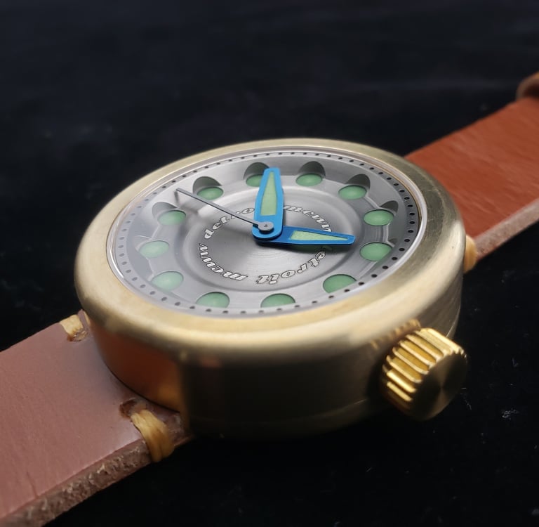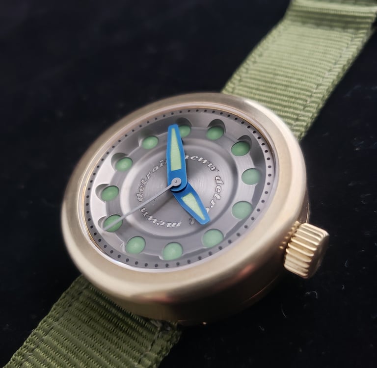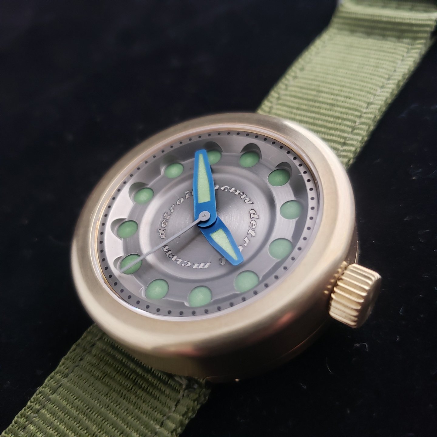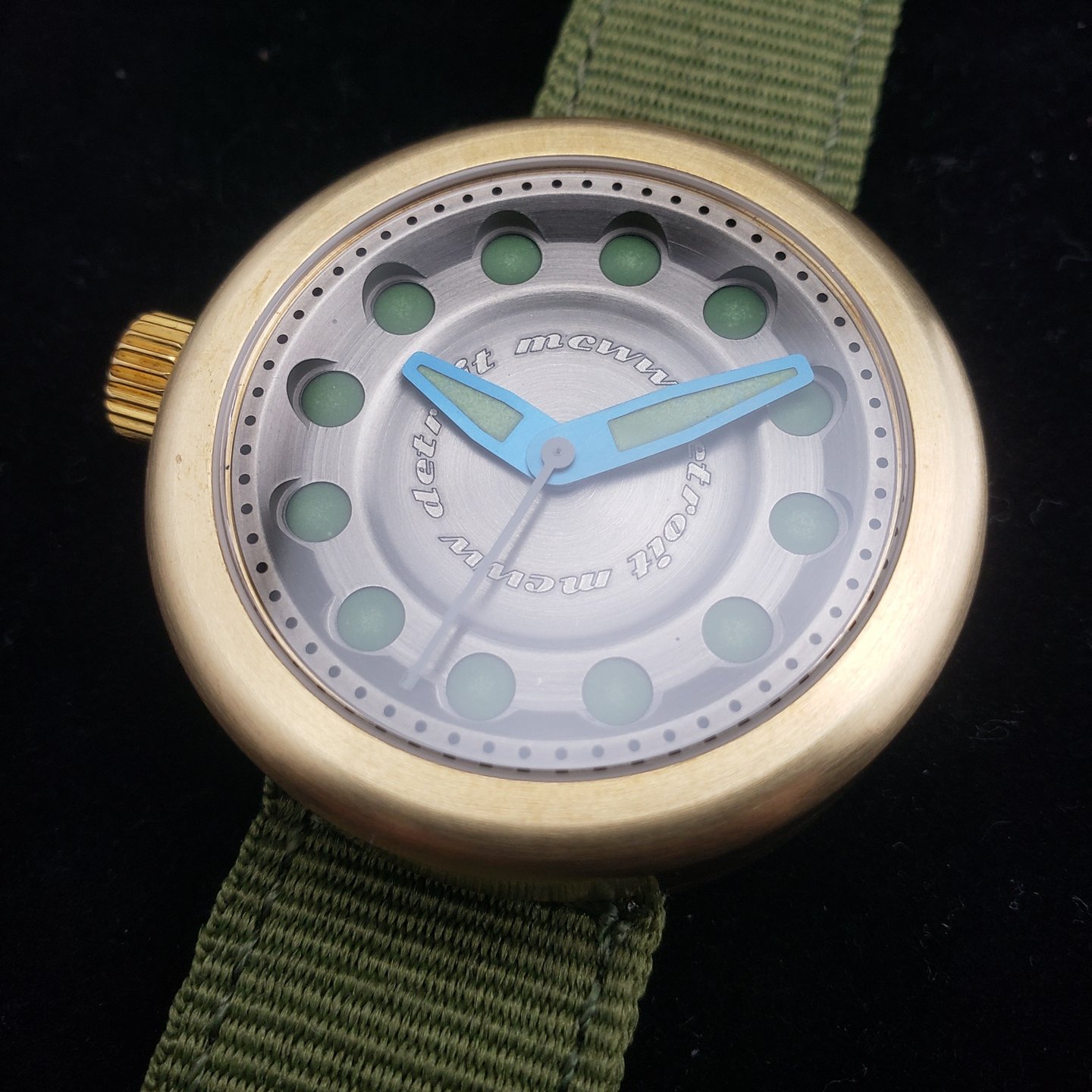 Dial: Grade 5 one-piece titanium with circular-grained brushed finish and hand-applied lume. Yes, I lume every dial by hand and the lume area is deep so 2 layers are required.